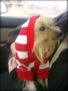 | Junie in her new sweater. She is so cute in purple. |